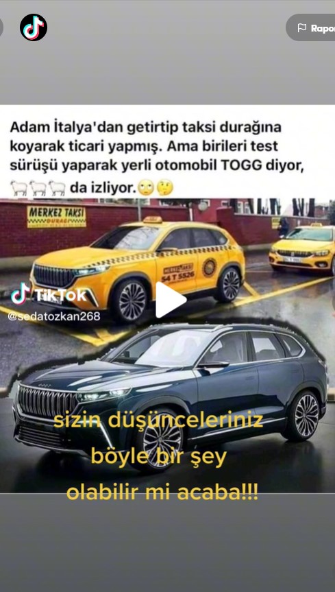- Togg marka taksi fotoğrafı gerçek değil, fotoğraf dijital düzenleme ile oluşturulmuş.