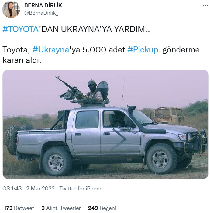 Toyota’nın Ukrayna’ya araç gönderdiğine dair bir paylaşımı yok