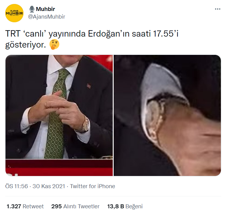 TRT canlı yayınında Cumhurbaşkanı Erdoğan’ın kol saatinin 17.55’i gösterdiği iddiası