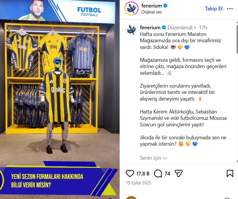 Bu robot aslında Eylül 2025’te de gündeme gelmişti. Bu kez üzerinde Fenerbahçe forması vardı.
