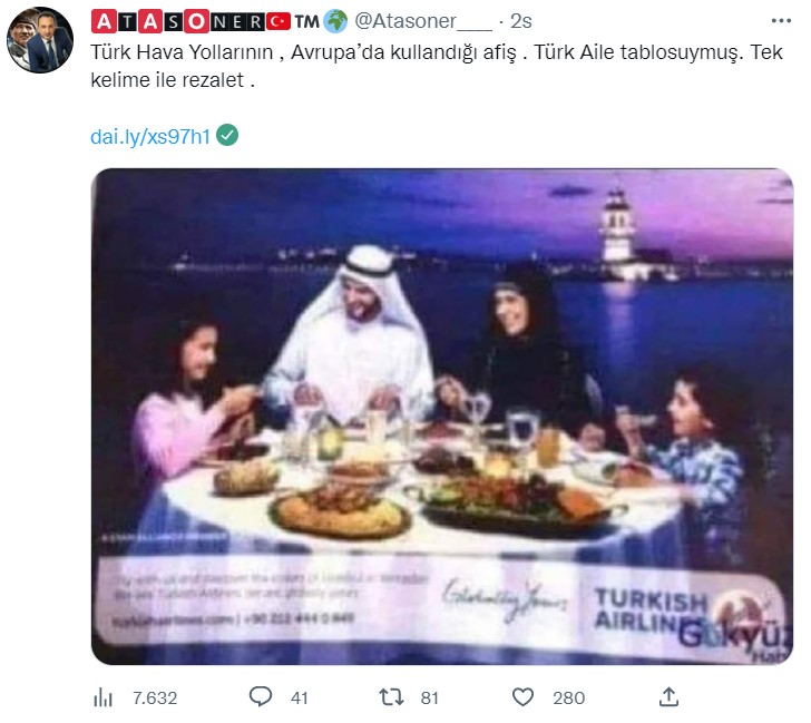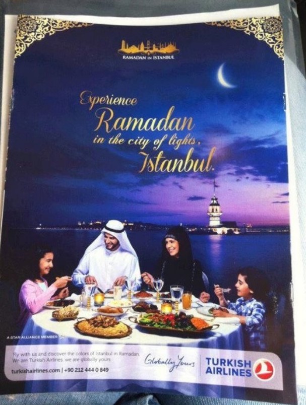 Sonuç olarak afişte bir Türk ailesinin gösterilmediği anlaşılıyor. Reklam, Ramazan’da uçak yolculuğu ile İstanbul’a gelen bir Arap aileyi gösteriyor ve turistik amaçlı çekilmiş.