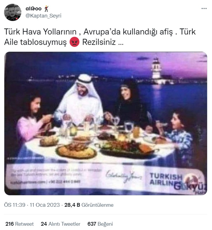 Türk Hava Yolları reklam afişinin Arap kıyafetli Türk ailesini gösterdiği iddiası