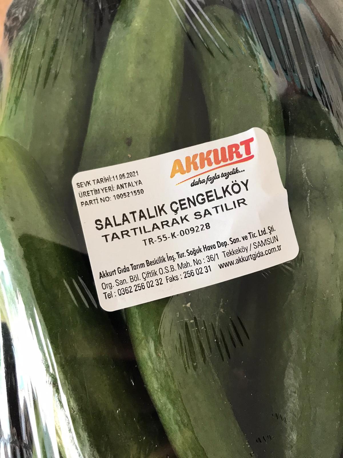 Fotoğrafta yer alan ürünün tedarikçisi Akkurt Gıda ile bir telefon görüşmesi yaptık. Firma yetkilisi Emre bey ile yaptığımız telefon görüşmesinde fotoğraftaki ürüne yanlış etiket basıldığı bilgisini aldık. Elde edilen fotoğraflara göre yanlış basılan etiket aslında kuru sarımsağa aitken, salatalığın asıl etiketinde üretim yerinin Antalya olduğu görülmektedir. (İlk ve ikinci görsel) Yine firmadan aldığımız ürün kodlarının son üç rakamı ile ürünlerin asıl etiketlerindeki parti kodlarının son üç rakamı eşleşmektedir. Önceki fotoğrafın parti kodunun son üç rakamının kuru sarımsağa ait olduğu görülmektedir. (3. Görsel)