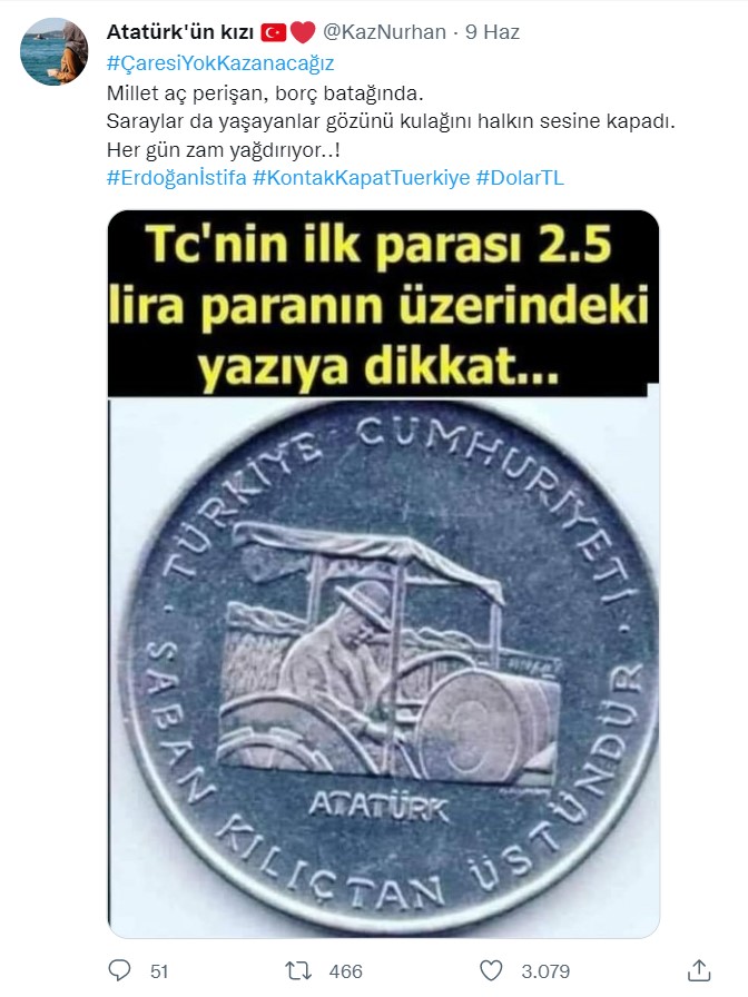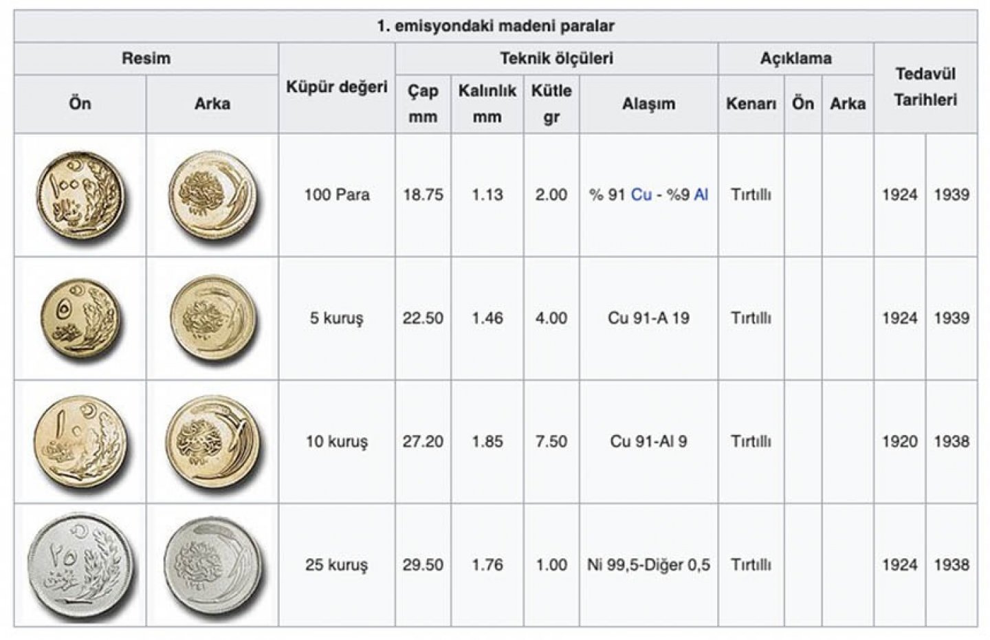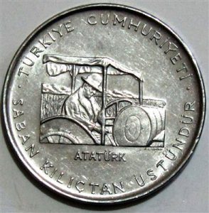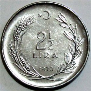 Görseldeki madeni para, 1970’li yıllarda çıkan hatıra 2,5 lira. Cumhuriyet döneminin ilk madeni para emisyonu 1924’te basıldı.
