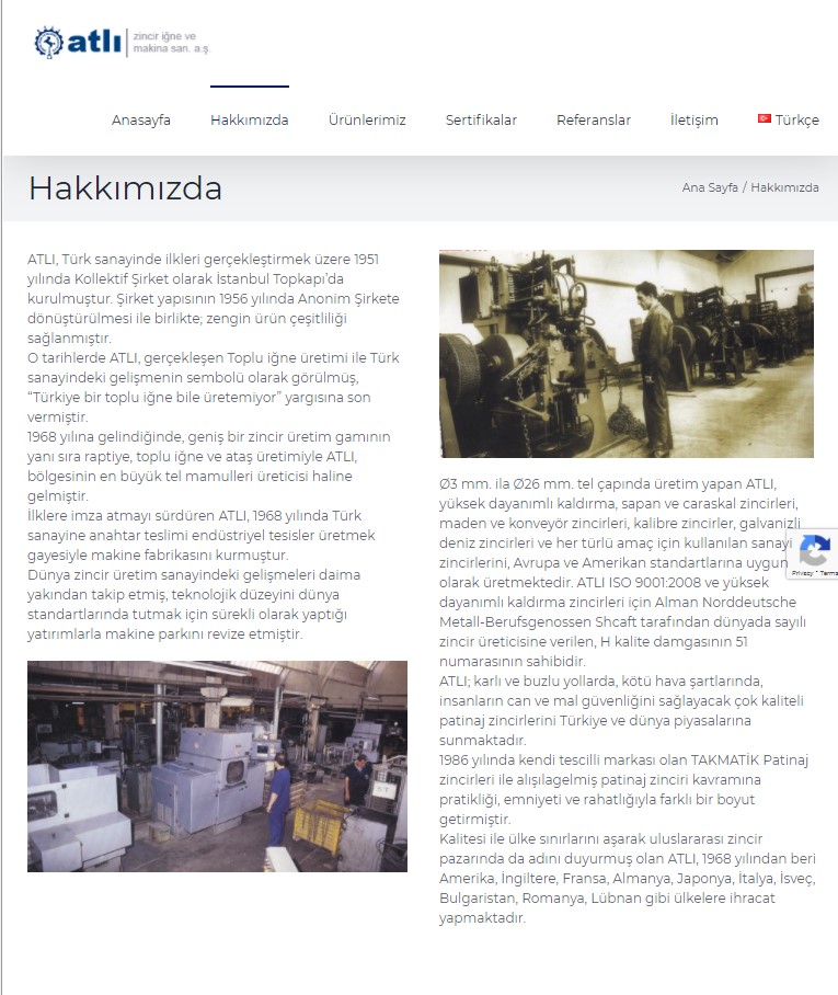 - Atlı Zincir İğne ve Makina Sanayi Anonim Şirketi’nin hakkımızda kısmı incelendiğinde şirketin 1951 yılında kurulduğu ve toplu iğne üretimi yaptığı anlaşılmaktadır.