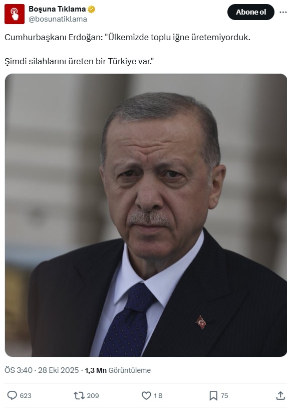 Cumhurbaşkanı Erdoğan, 28 Ekim 2025’te Altay Tankları teslim töreninde söylediği “20-25 yıl önce ülkemizde bir toplu iğne üretemiyorduk” ifadesi ile aynı söylemi yineledi ve yine medyada geniş yankı uyandırdı.