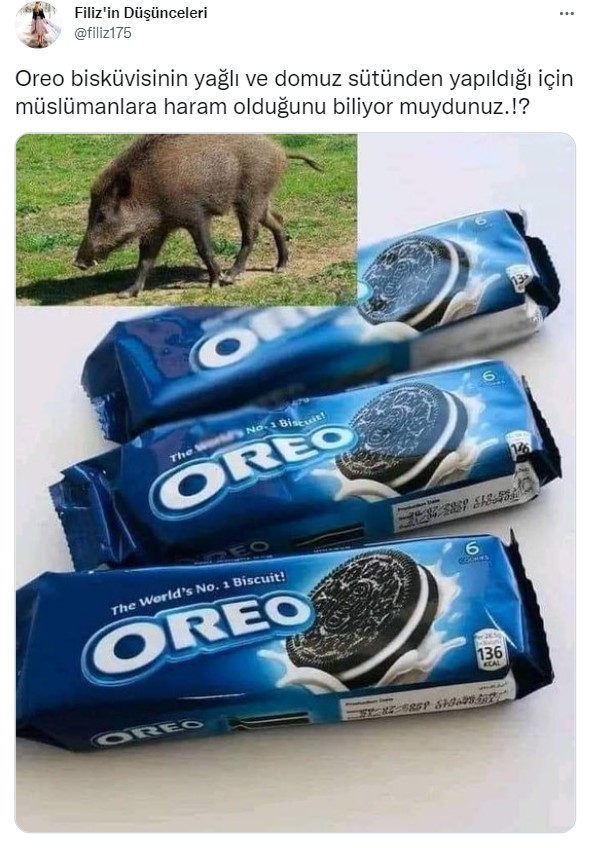 Sosyal medyada yayılıma giren bir iddiaya göre Oreo bisküvilerde domuz sütü ve yağı varmış. Bu sebeple de helal değilmiş.
