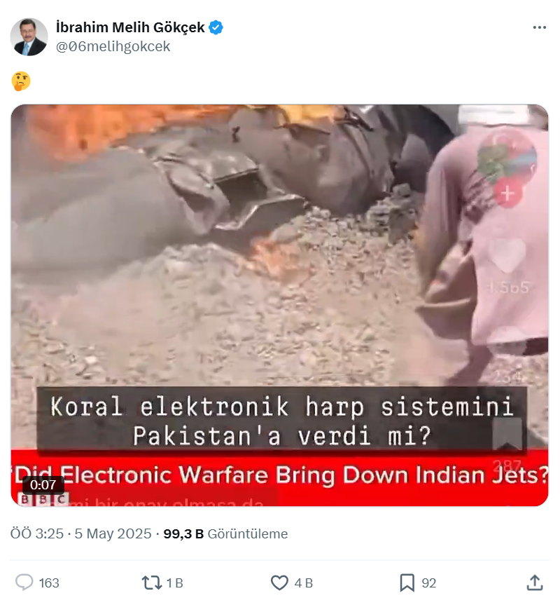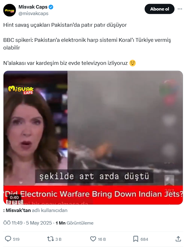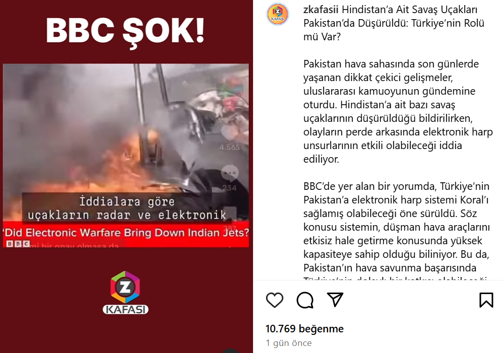 Son günlerde de sosyal medyada Pakistan’ın Türkiye’den aldığı KORAL Elektronik Harp Sistemi ile Hindistan’ın uçaklarını düşürdüğünü haberleştiren bir BBC videosu dolaşımda.