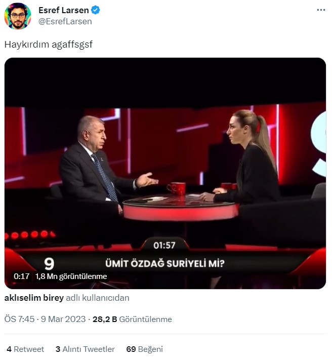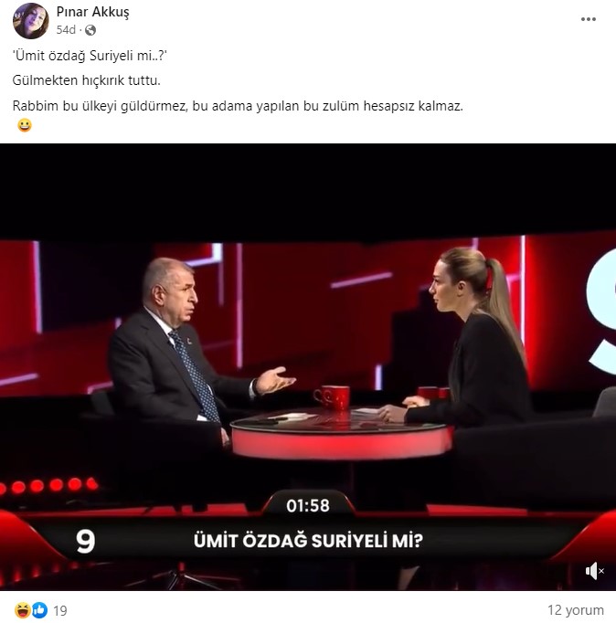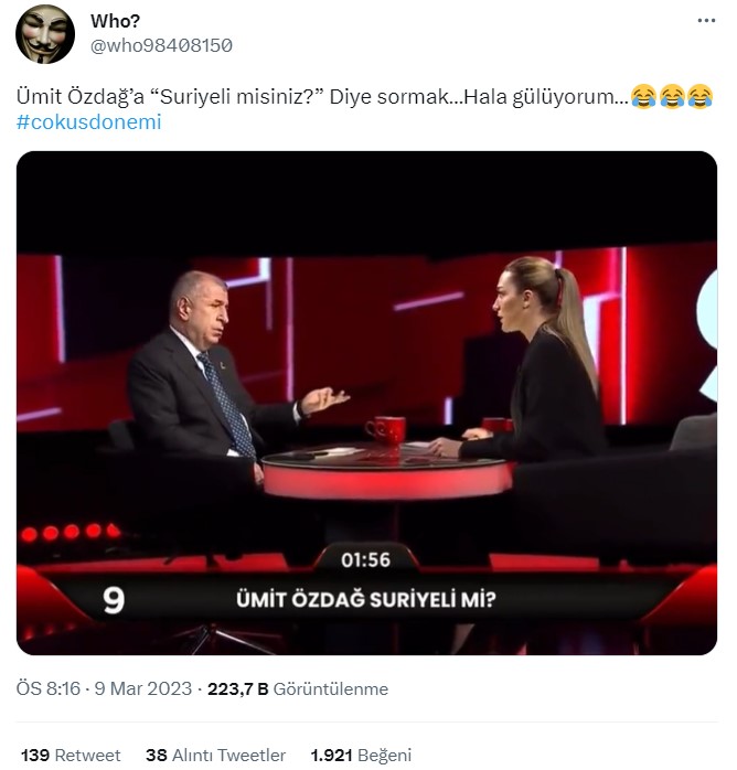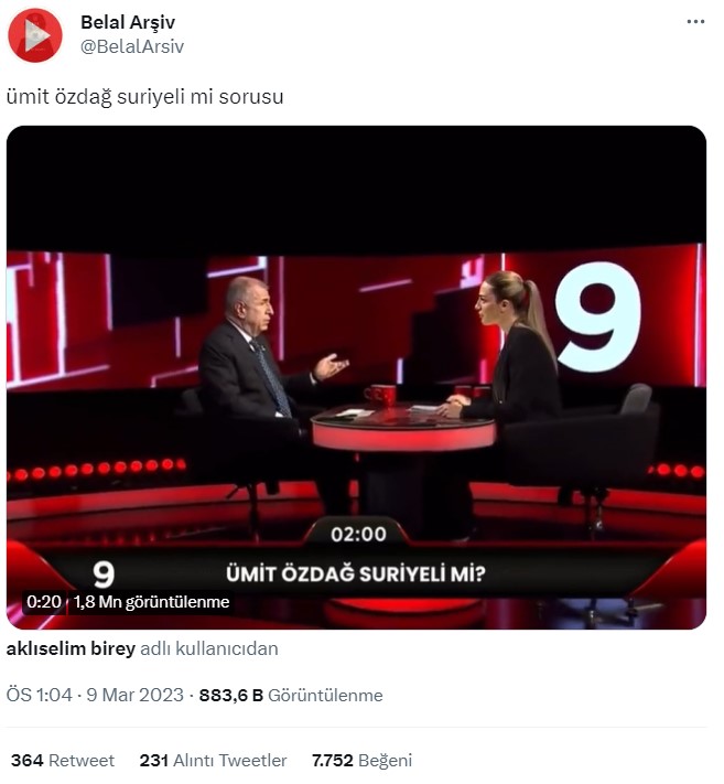 Söylemleri ve paylaşımlarıyla adından sıklıkla söz ettiren Zafer Partisi Genel Başkanı Ümit Özdağ ile ilgili olarak sosyal medyada paylaşımda olan bir gönderide, Özdağ’ın katıldığı bir programda “Ümit Özdağ Suriyeli?” sorusunu cevapladığı iddia edildi.