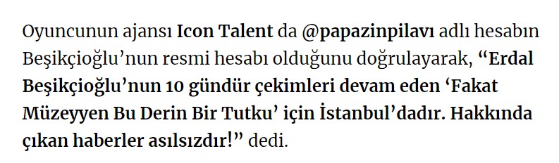 Erdal Beşikçioğlu’nun orijinal tek hesabı: “@papazinpilavı”