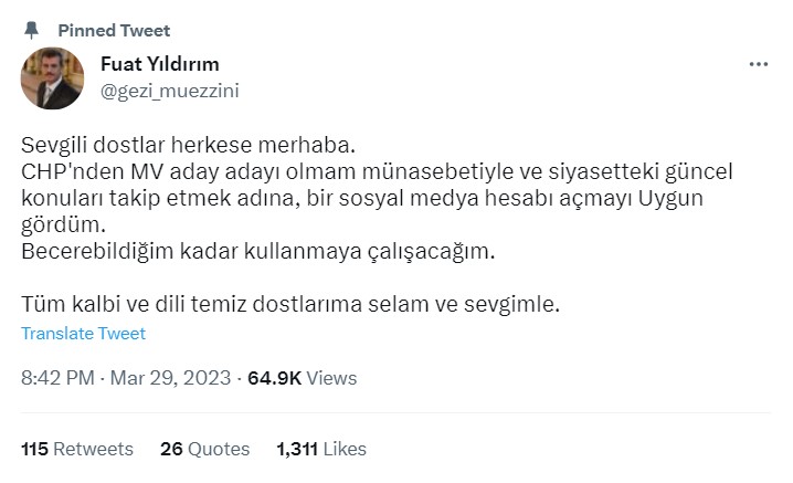 Zaten Fuat Yıldırım da kullandığı @fuatyildirim28 isimli resmi Twitter hesabının açıklamasına ‘CHP İstanbul 2. Bölge 28 Dönem Milletvekili Adayı’ unvanını eklemiş.