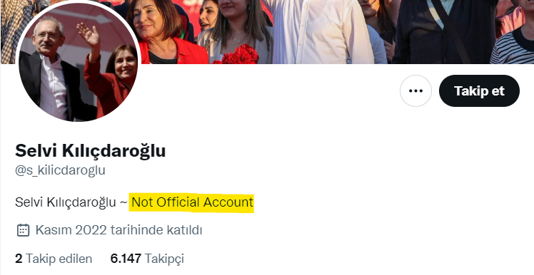 Bugün de benzer şekilde CHP Genel Başkanı Kemal Kılıçdaroğlu’nun eşine ait olduğu sanılan twitter hesabı gündeme geldi. @s_kilicdaroglu isimli Twitter hesabının Kasım 2022’de açılmış olması ve ilk paylaşımının da iddiaya konu olan tweet olması da şüphe uyandırıyor.