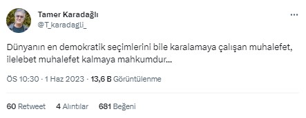- Twitter hesabı Tamer Karadağlı’ya ait değil.