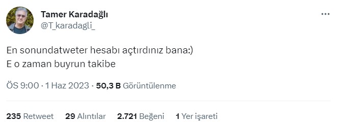 - Tamer Karadağlı’nın Twitter hesabı yok.