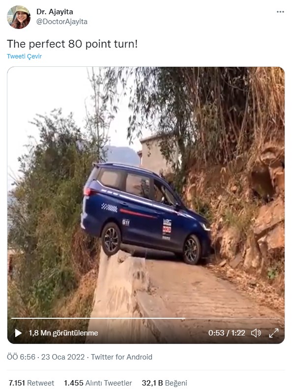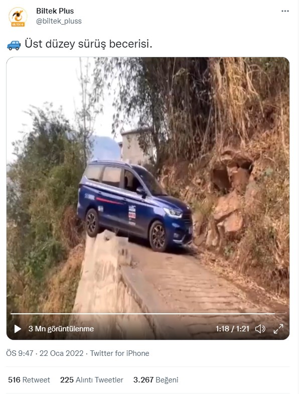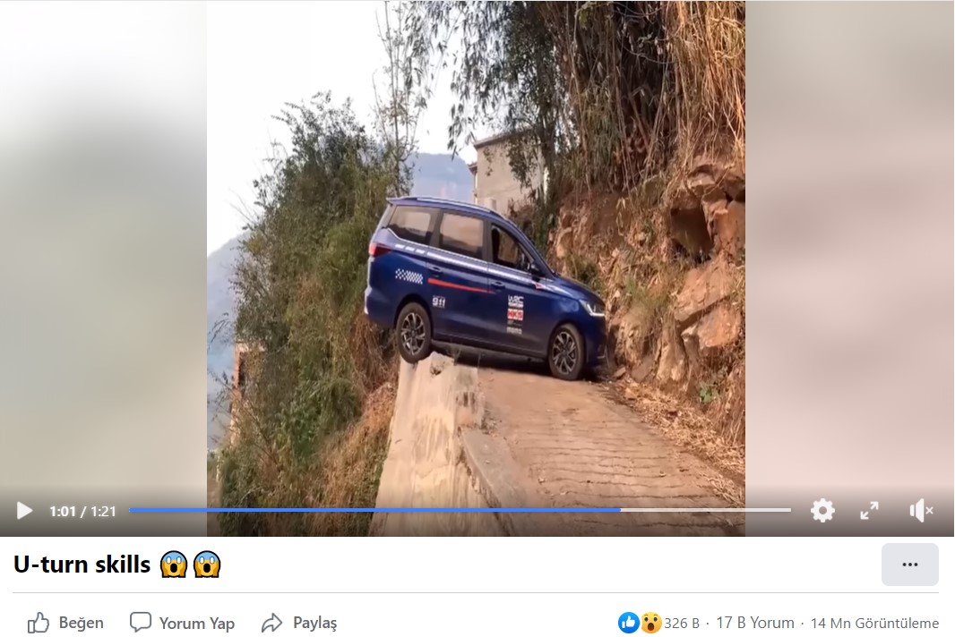 Ocak ayında viral olan ve geniş çapta yayılan videoda, sürücünün uçurum kenarında arabayı kusursuz bir şekilde U dönüşü yaptığı görülüyor. Başta Facebook olmak üzere sosyal medya platformları ve haber sitelerinin videoyu paylaştığını görmek mümkün. Kullanıcılar, sürücünün uçurum kenarında aracı döndürdüğünü iddiasını milyonlarca kez paylaştı, beğendi ve yorumladı. Paylaşım o kadar çok beğenildi ki güncelliğini hâlen korumaya devam ediyor.