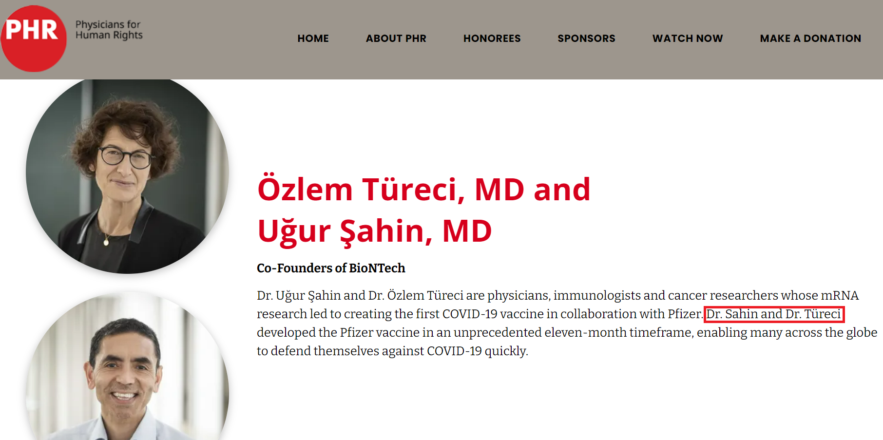 BioNTech şirketinin internet sitesinde ve Frankfurt Goethe Üniversitesinin resmî internet sitesinde Türeci ve Şahin’den tıp doktoru olarak bahsedildiği görülmekte.
