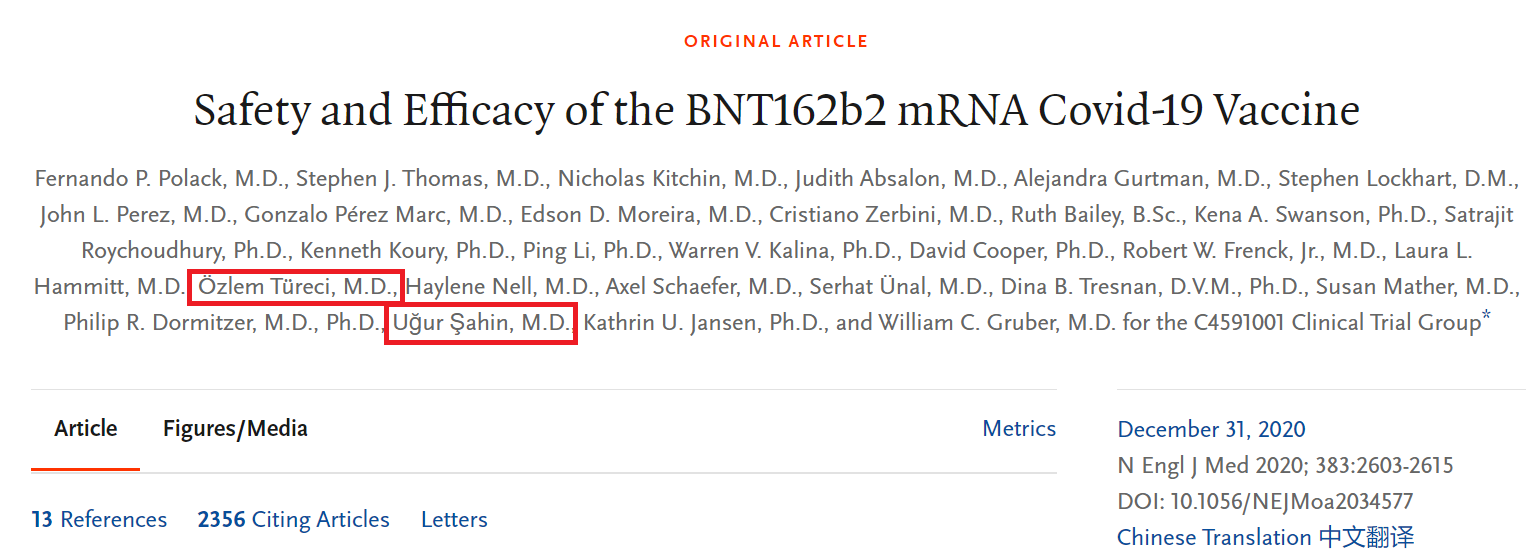Şahin ve Türeci’nin NEJM gibi dünyanın en saygın hakemli dergilerinde yayımlanan çalışmalarına baktığımızda, makale çalışmasını yürütenlerin isimlerinin yer aldığı kısımda her ikisinin de isimlerinin yanında MD (medical doctor/tıp doktoru) titrini görmekteyiz.