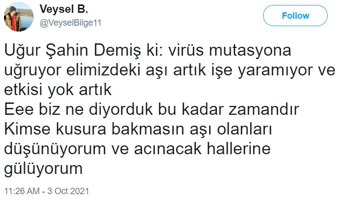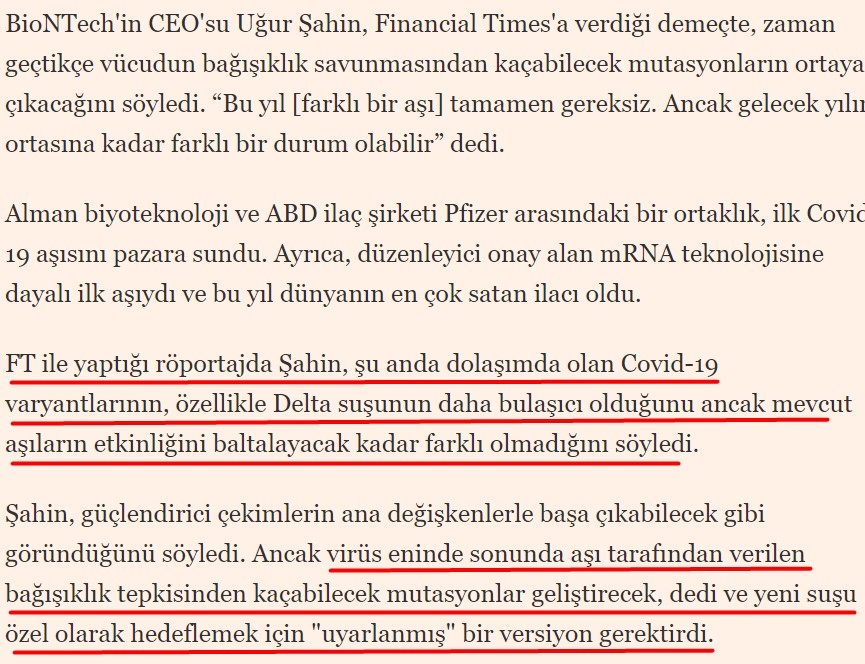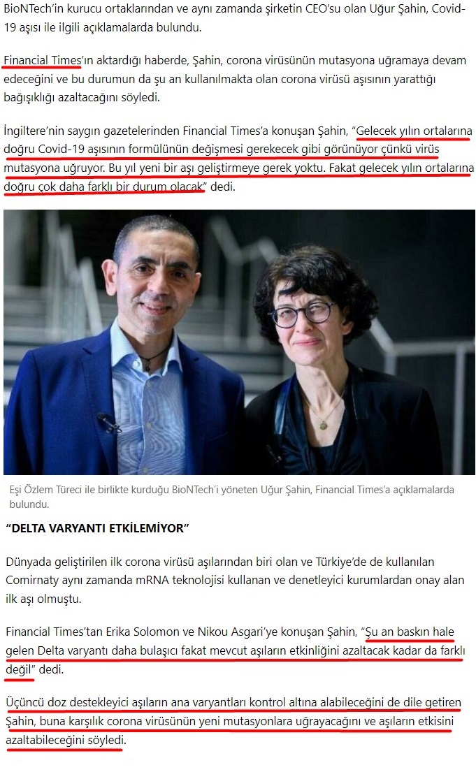 Görüldüğü üzere Uğur Şahin, güncel olarak kullanılan aşıların işe yaramadığı ile alakalı herhangi bir beyanda bulunmamıştır. Halihazırda yayılımda olan Delta varyantının, şimdilik aşıların etkisini azaltmadığını söyleyerek, ileri vadede aşıları etkisiz hale getirmesi ihtimalini vurgulamıştır. Buna ek olarak, yıl sonu yeni bir aşı geliştirilme ihtiyacı oluşabileceğinden bahsetmiştir.