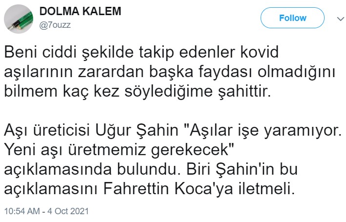 Şahin, aşıların şu anda virüsle mücadelede etkinliğini sürdürdüğünü söylemiş ancak delta mutasyonundan dolayı etkinliğini kaybetmesi durumunda yıl sonunda yeni bir aşı geliştirilebileceğini ifade etmiştir.