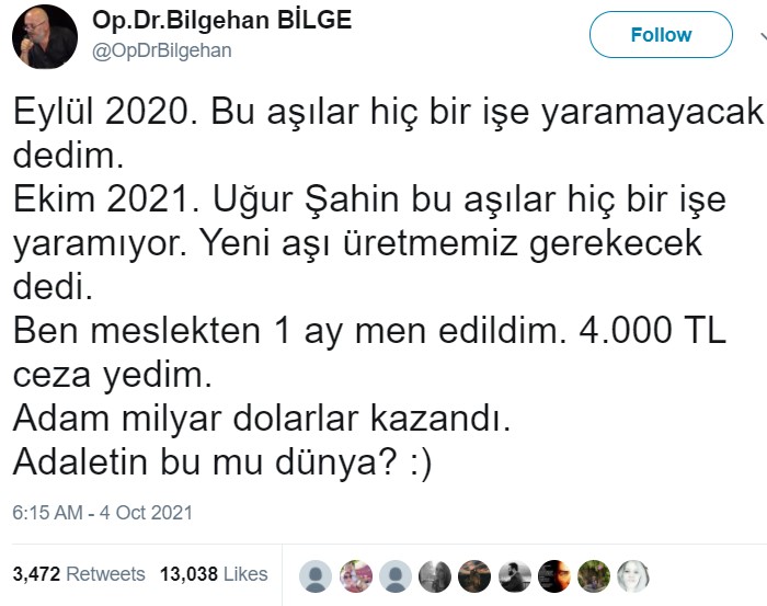 Koronavirüsün birçok varyantının ortaya çıkması, bilim insanları tarafından güncel olarak araştırılıyor ve tedavi yöntemlerinde değişime gidiliyorken; ne yazık ki sosyal medya kullanıcılarının bu konuda bazı dezenformasyonlar yaptığını görüyoruz. Pfizer’ın kurucu ortağı olarak bilinen Türk-Alman immünolog Uğur Şahin’in söylediği iddia edilen sözler de, Twitter’da birkaç gündür gündemde yer almaktadır. Bilgehan Bilge’nin ortaya attığı bu iddiaların doğrulamasını yapmak için konuyu detaylıca araştırdık.