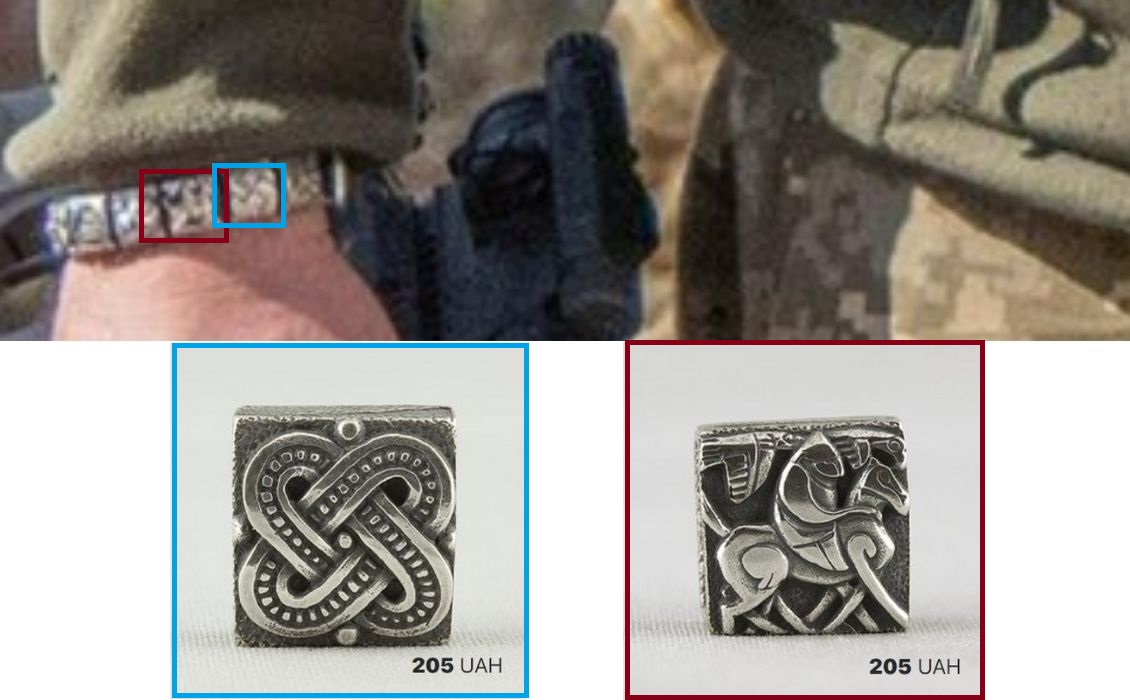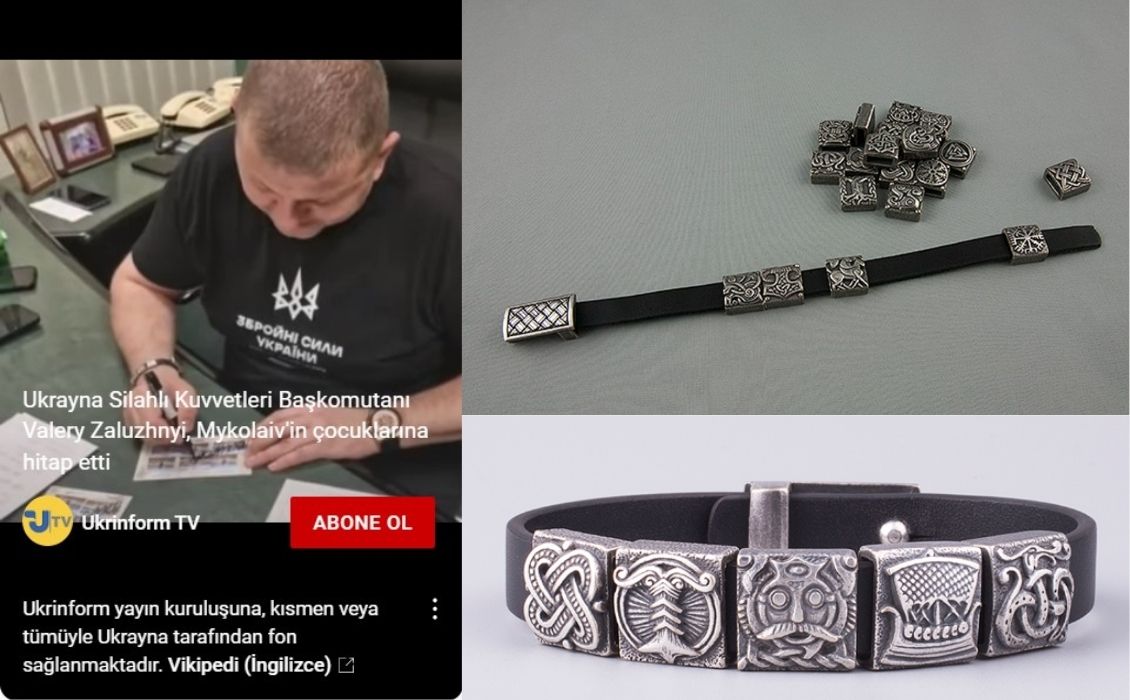 Zaluzni’nin bilekliğinin modeli, Ukrinform’un YouTube videosunda da görülüyor. Bu videoda bileklik daha açık bir şekilde seçilebiliyor. Buradan destek alarak mağazadakinin yapısıyla uyuştuğunu da doğrulayabiliyoruz.