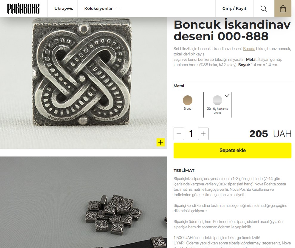 Sitedeki bileklik incelendiğinde bilekliğin taşlarının ayrı ayrı satın alınıp istenilen sırayla takılabileceği anlaşılıyor. “Midgard Viking Bileklikleri” kategorisi altında, birçok taş boncuk görülebiliyor.