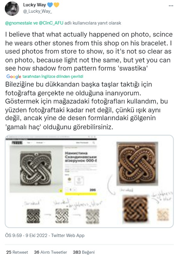 Bilekliğin Nazi ile ilişkilendirilmesi ise Zaluzni’nin fotoğrafı 6 Ekim’de Twitter’da yeniden paylaşmasının ardından başladı.