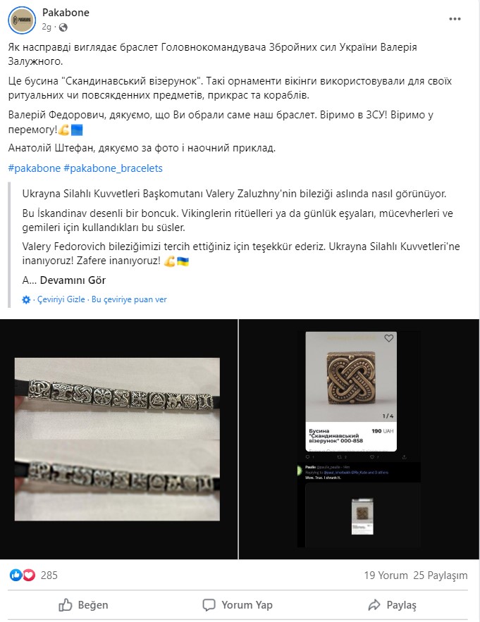 Zaluzni’nin paylaşımının altında birçok kişi sembolün gerçekten Nazi simgesi olup olmadığını sordu. Kimi kullanıcılar, bilekliğin Pakabone isimli mağazada satılan modüler bir takı olduğunu ve söz konusu taşın gamalı haç olmadığını fotoğraf kanıtları ile paylaştılar.
