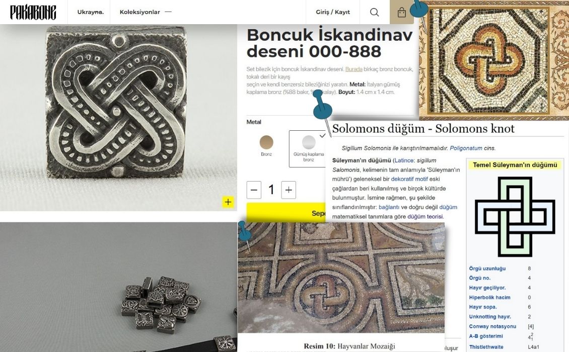 Yine de kameraya dönük iki taş ile internet sitesindeki taşlar arasında benzerlik yakalayabiliyoruz. Bunlardan birisi de Süleyman düğümü.