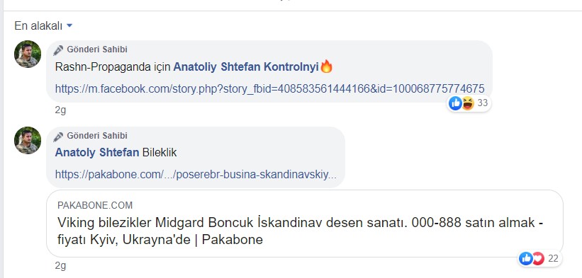 Ukrayna Silahlı Kuvvetleri’nden Anatoly Shtefan, 9 Ekim’de sosyal medya hesapları üzerinden konuyla ilgili paylaşım yaptı. Shtefan, iddiaların propagandadan ibaret olduğunu belirtirken paylaşımında yine Pakabone isimli mağazanın linkini verdi.
