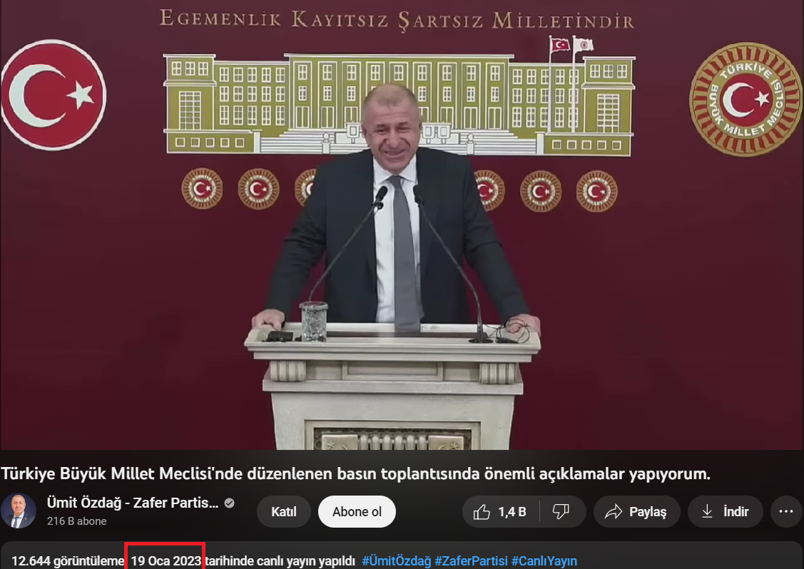 - Ümit Özdağ’ın söz konusu TBMM basın toplantısı güncel değil, açıklama 19 Ocak 2023 tarihinde gerçekleşmiş.