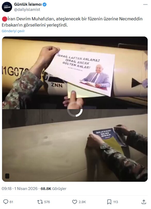 Sosyal medyada paylaşılan bir videoda, bir füzenin üzerine Necmettin Erbakan’a ait söz ve fotoğrafın bulunduğu bir kağıdın yapıştırıldığı öne sürüldü. Görüntüler, ABD/İsrail-İran gerilimi bağlamında servis edilerek İran Devrim Muhafızları ile ilişkilendirildi.