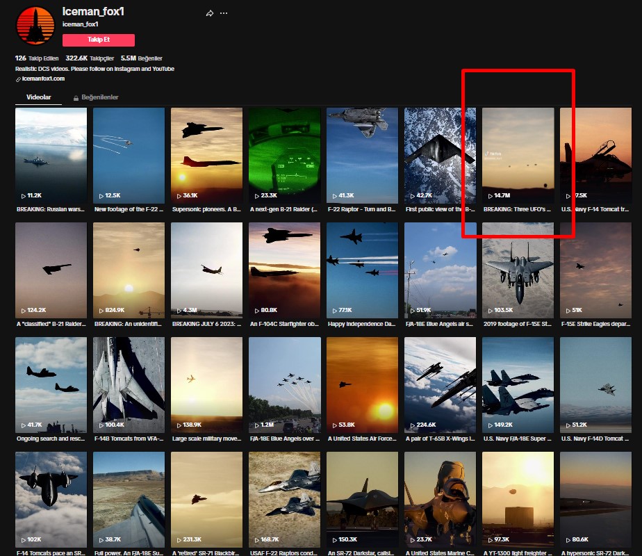 TikTok hesabının biyografi kısmında, gerçekçi DCS yani Digital Combat Simulator isimli savaş oyunundan videolar paylaşıldığı belirtilmiş.Hesabın Instagram ve YouTube kanalları da var.