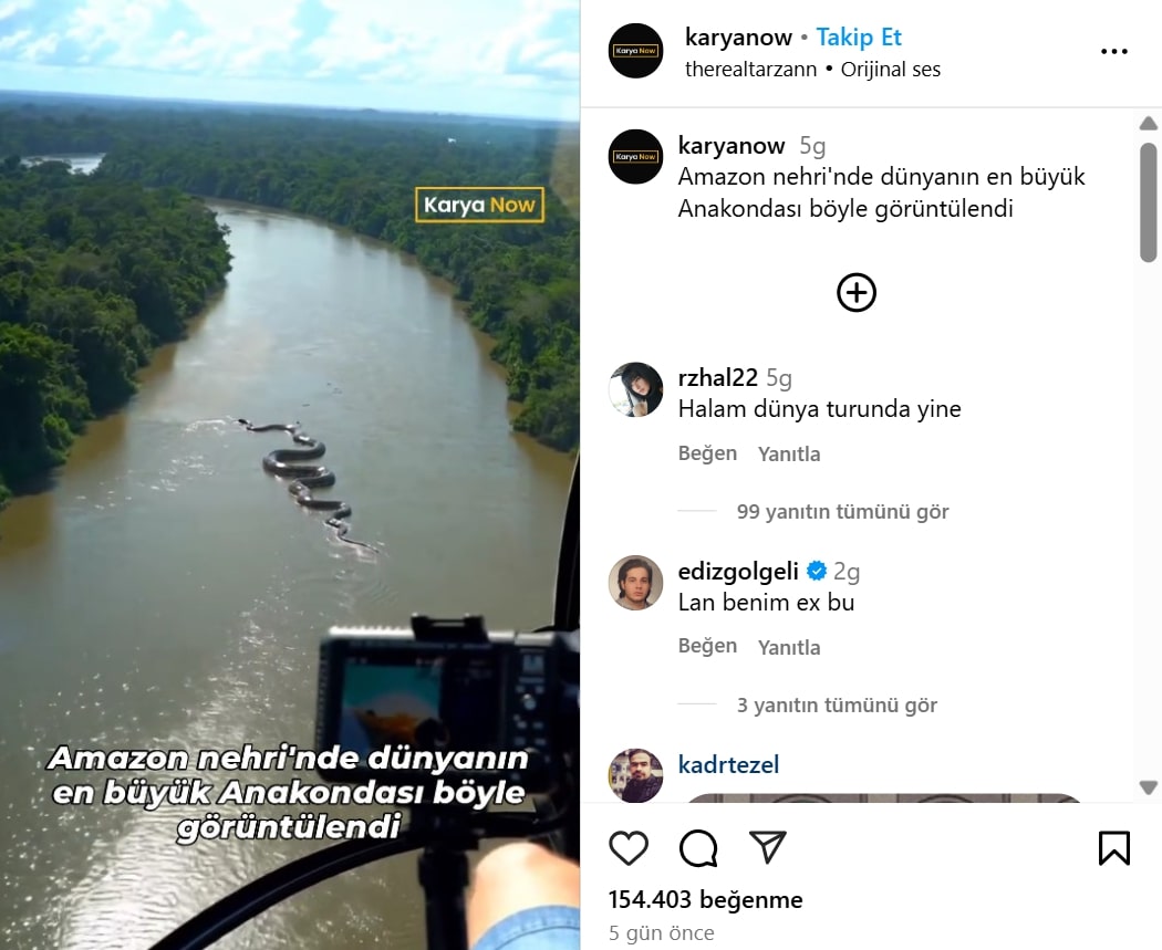 Hesap, 7 Mayıs’taki paylaşımını, “Amazon’da bir dev anakonda daha yakalandı!” şeklinde devam ettirmiş.