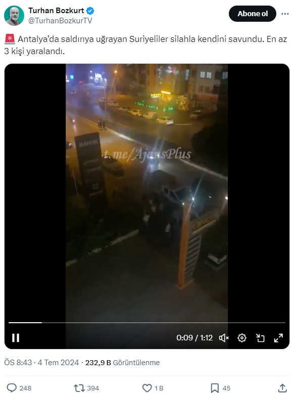 Kayseri’de Suriyeli bir sığınmacının küçük bir kızı taciz ettiği iddiasının ardından ülke genelinde sığınmacılarla yaşanan kavga, çatışma sahneleri yaşanmaya başlandı. Sosyal medyada dolaşıma giren bir video, Antalya’da Suriyeli sığınmacılar ile yaşanan kavgadan olduğu iddiasıyla dolaşıma girdi. İlgili videoyu inceledik.