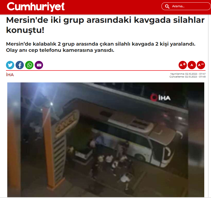 Sonuç olarak kaynaklara göre olay Antalya’da değil Mersin’de yaşanmış. Ayrıca güncel değil, 2023 yılından ve kavganın Suriyeli sığınmacılarla yaşandığına dair herhangi bir bilgi yok.