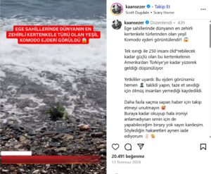 Video, Ege’de bir komodo ejderini mi gösteriyor?