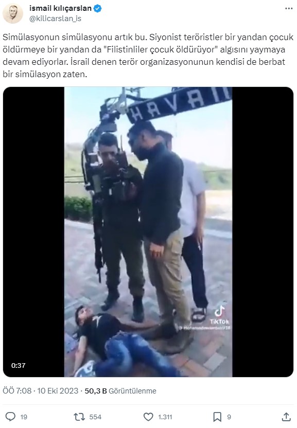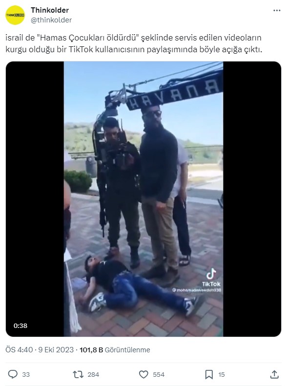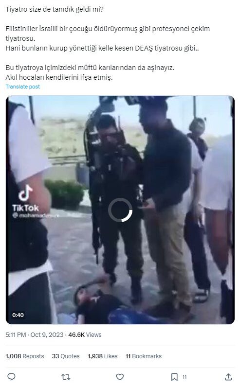 Bazı kullanıcılar, Filistinlilerin ‘sözde’ sivil bir çocuğu öldürdüğü anın aslında aktörlerle sette hazırlanmış bir kurgu çekimi olduğunu iddia etti.