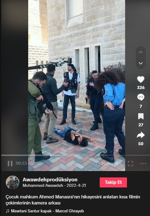 Filistinli yönetmen Awni Eshtaiwe’nin yönettiği Empty Space (Türkçesiyle “Boş Alan”) isimli bu kısa film, Filistinli Ahmed Manasra’nın hapsedilmesine yol açan olaylara dayanıyor. İddia paylaşımlarına konu olan görüntüler, filmin fragmanının 1. dakika 11. saniyesinde açıkça görülebiliyor.