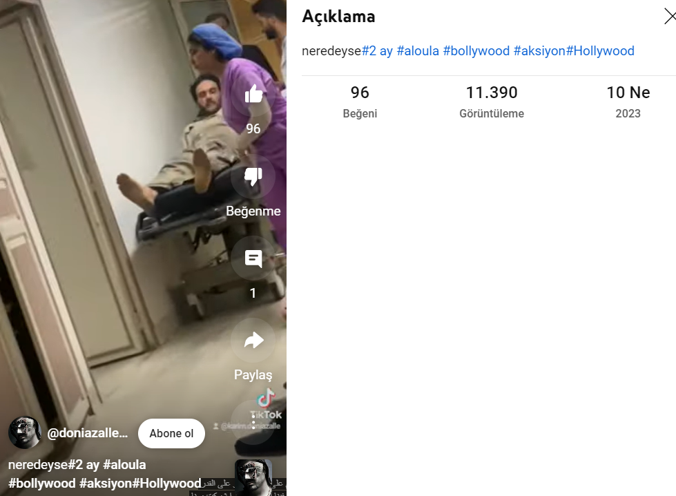 Aynı videoyu Kasım 2023’te de TikTok ve YouTube hesabından yine benzeri etiketler ile paylaşmış.