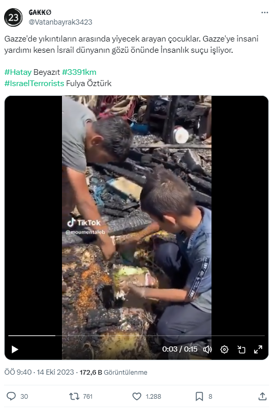 Sosyal medyaya dolaşıma giren bir video, Gazze’deki Filistinli çocukları yemek ararken gösterdiği iddiasıyla paylaşılıyor. Söz konusu videoyu inceledik.