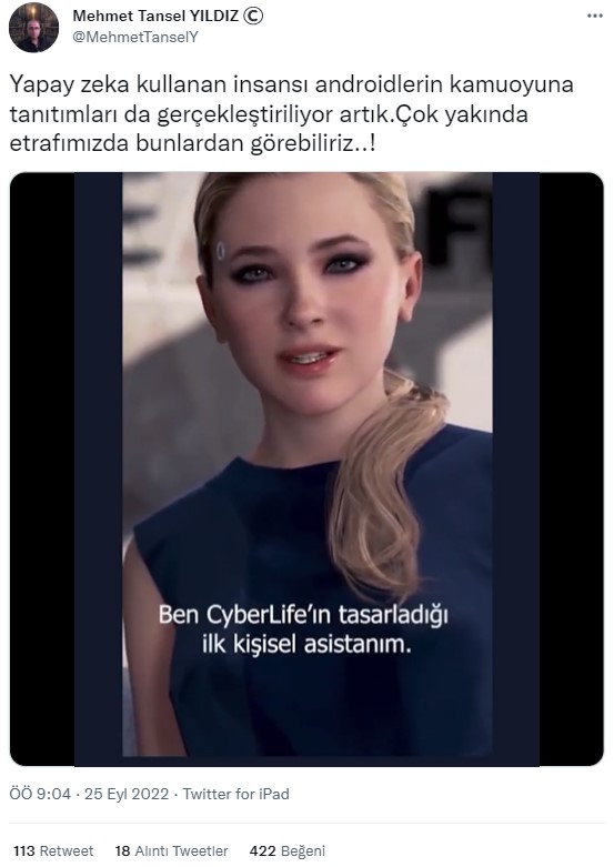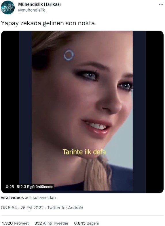 Yapay zekayla oluşturulmuş bir robot ile yapılan röportajı gösterdiği iddia edilen video birçok sosyal medya kullanıcısı tarafından yorumlandı. İlgili videoyu inceledik