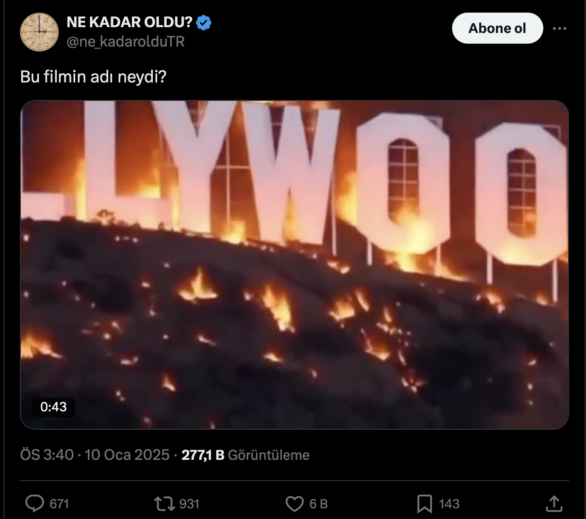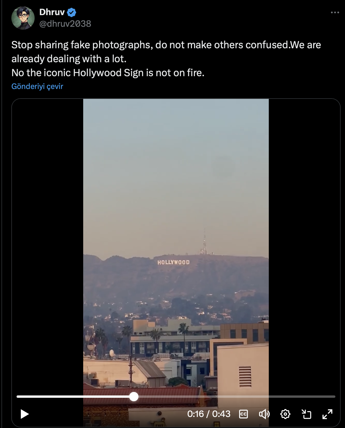 - Sosyal Medya: Video, Twitter ve Facebook gibi platformlarda hızla yayıldı. Kullanıcılar, Hollywood yazısının alevler içinde olduğunu gösteren bu videoyu gerçek sanarak paylaştı ve endişelerini dile getirdi.