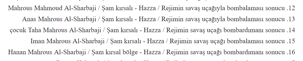 - Videodaki kişi 2013 Mayıs’ında öldürülen kişileri gösteren listede de ismi yer alan Mahrous Al Sharbaji isimli Suriyeli.