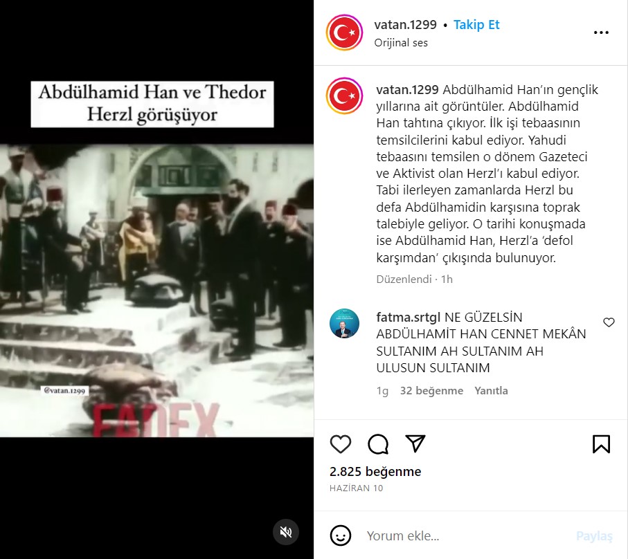 - Video, II. Abdülhamid’in gençlik yıllarında Theodor Herzl ile yaptığı görüşmeden olduğu iddiasıyla paylaşılmış.