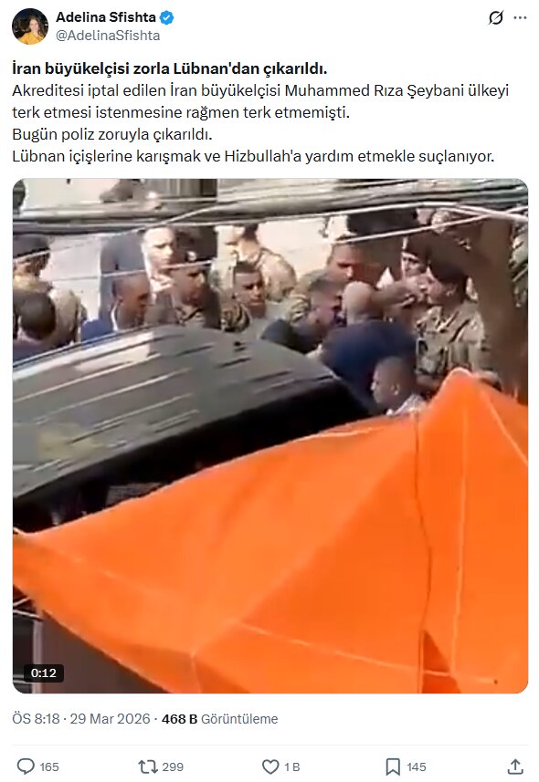 - Video, İran Büyükelçisi Muhammed Rıza Şeybani’nin Lübnan’dan zorla çıkarıldığı göstermiyor.