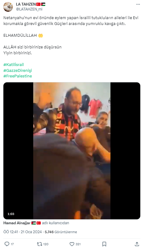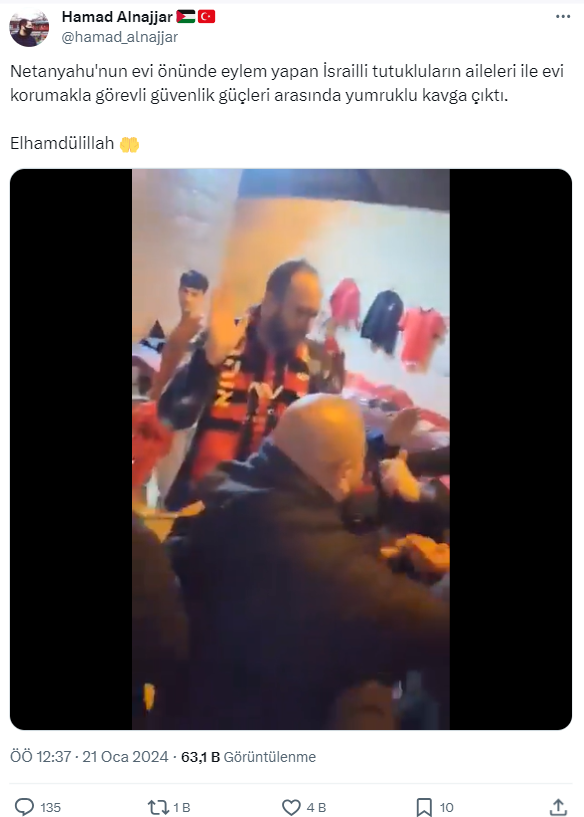 Video İsrail Başbakanı Netenyahu’nun evinin önünde rehine yakınları ile polis arasında yaşanan kavgayı mı gösteriyor?