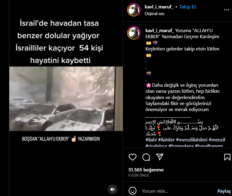 Sosyal medya üzerinden paylaşılan bir videoda, İsrail’de havadan taşa benzer dolu yağdığı öne sürüldü. Görüntüler, kısa süre içerisinde yayıldı ve etkileşim aldı.