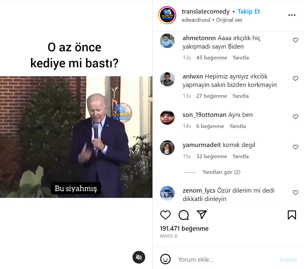 Instagram akışında da Biden ile ilgili mizah amaçlı üretilmiş videolar yer alıyor.