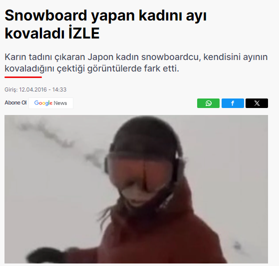 Peki kayak yaparken Rihanna’nın şarkısına eşlik eden ve ayı tarafından kovalanan kadının videosu gerçek mi? Söz konusu videodan ekran görüntüsü alarak tersine görsel arama yöntemiyle araştırıyoruz. Araştırdığımızda bu iddianın doğru olmadığı sonucuna ulaşıyoruz. 2016 yılına ait haberlerde videonun, Avustralyalı bir video prodüksiyon şirketinin sosyal deneyinden olduğu bilgisi yer alıyor.